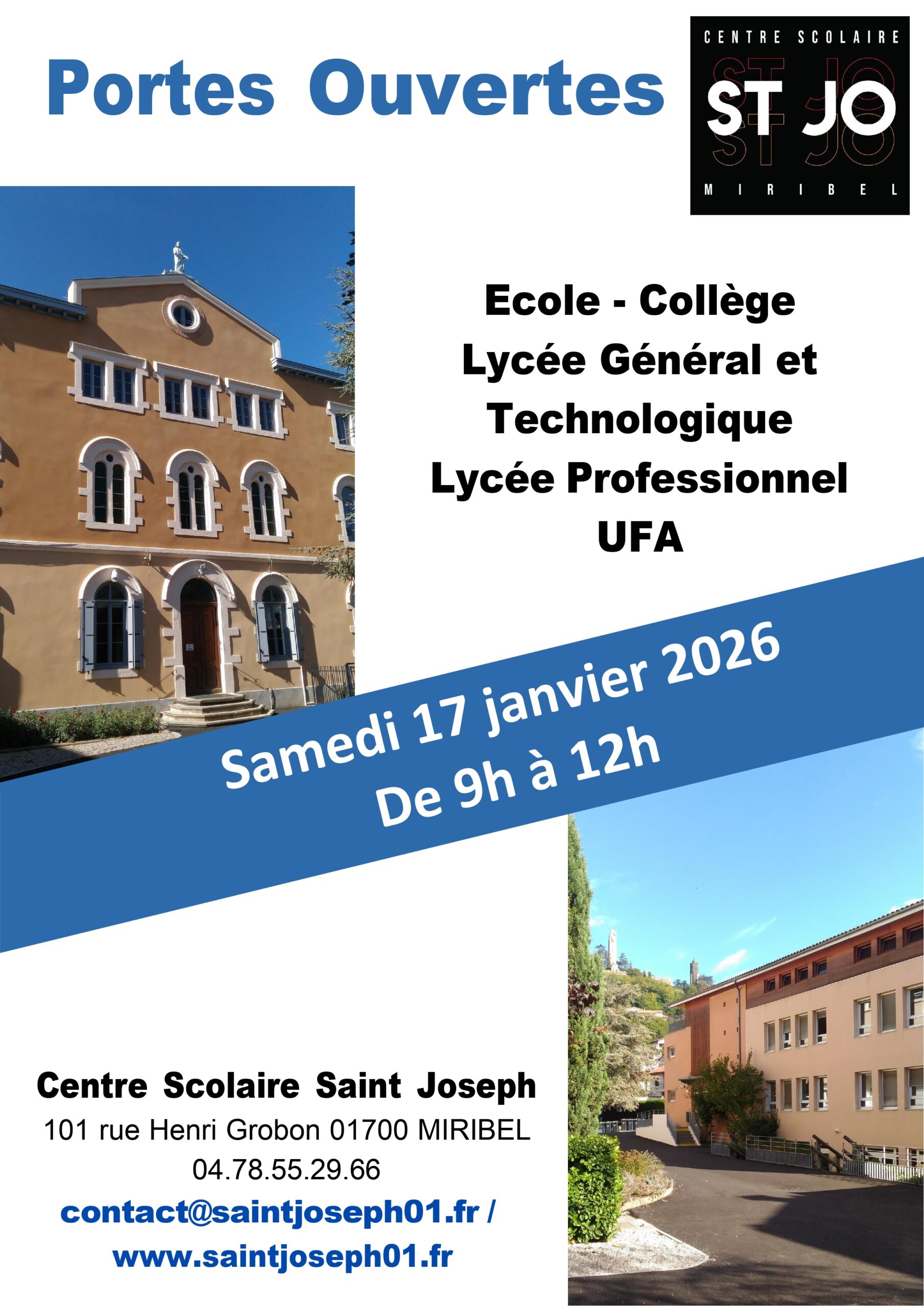 Le Centre scolaire Saint Joseph de Miribel, établissement fondé par les sœurs de Saint Joseph de Lyon en 1880, accueille les jeunes de la maternelle jusqu’au baccalauréat. Nous disposons de 4 unités pédagogiques qui répondent à un large choix de formations : Ecole, Collège, Lycée Général et Technologique et Lycée Professionnel.
