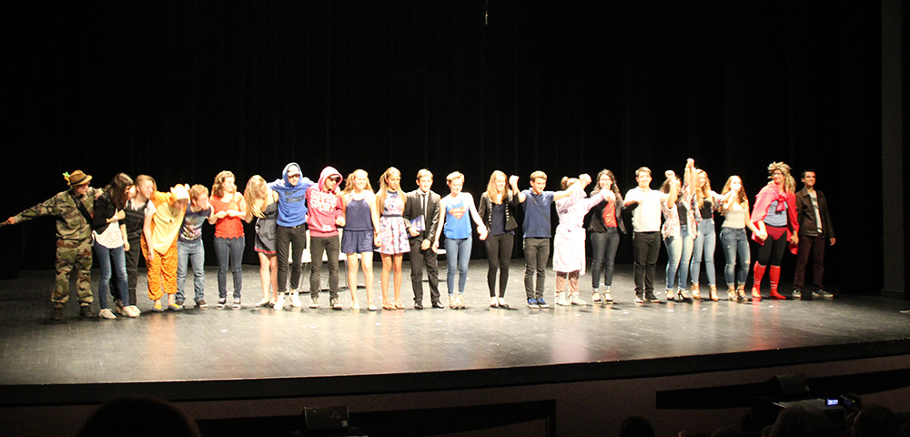 En cette fin d’année, les 24 élèves de 2nde, 1ère et terminales du Lycée Général et Technologique inscrits à l’atelier ou à l’option théâtre se sont produits sur la scène de l’Allegro (salle des fêtes de Miribel) devant plus de 300 collégiens ce Vendredi après-midi et le soir devant leurs parents et leurs camarades du lycée.