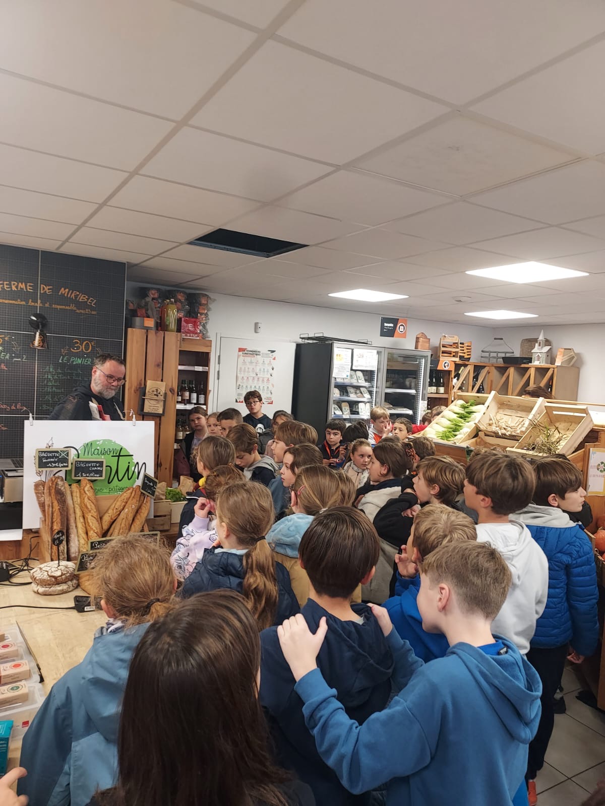 À l’occasion de la Semaine du goût, organisée par notre école du 13 au 17 octobre, les élèves des classes de CM2 A et B ont visité La Ferme de Miribel. Cette sortie leur a permis de découvrir la provenance des aliments et de comprendre l’importance de consommer des produits bio, locaux et de saison, issus du commerce de proximité.